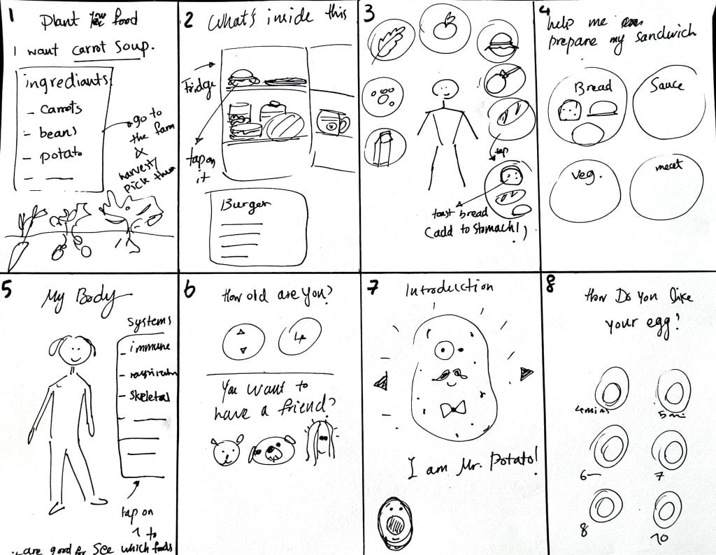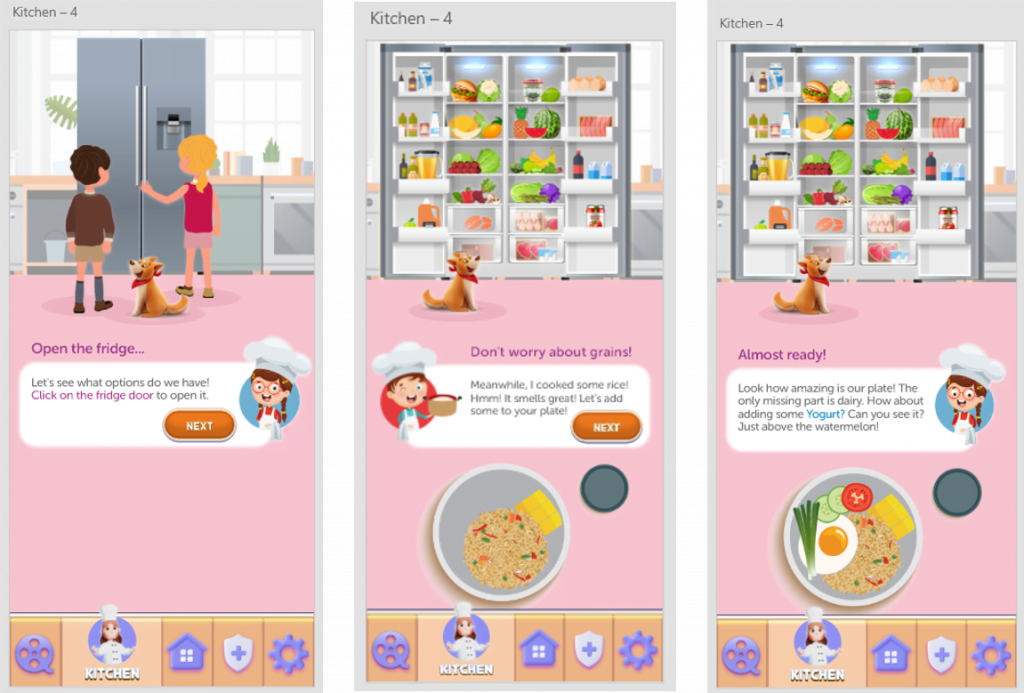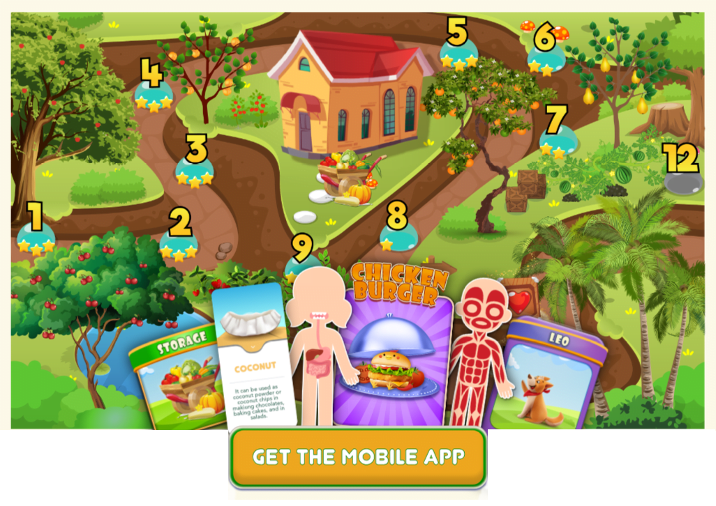 The main intent for using this app for kids is learning about nutrition. Therefore, I checked several platforms and games to see how kids interact with them.