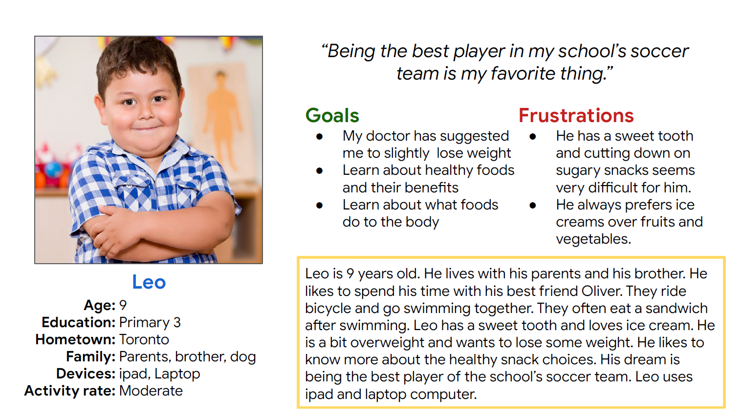 Create a non-judgmental nutrition platform tutoring kids about nutrition and encouraging them to make healthier choices. Along with it there is a need to help the parents update their knowledge about their children’s’ nutrition.