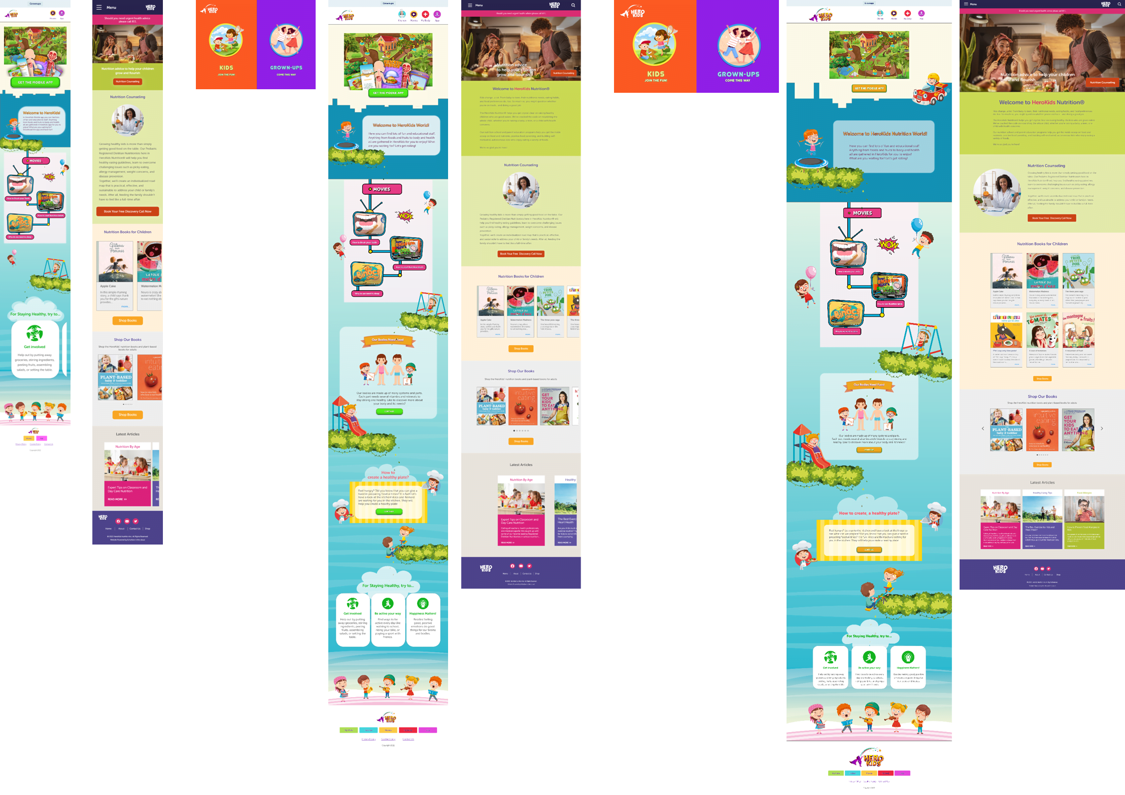 Although I had designed the assets from the scratch for the HeroKids app, I managed to design a new set of assets for responsive website. I used the colors and design style in the app so that the website could be in harmony with the app. However, I optimized the elements to fit the specific user needs of each device.